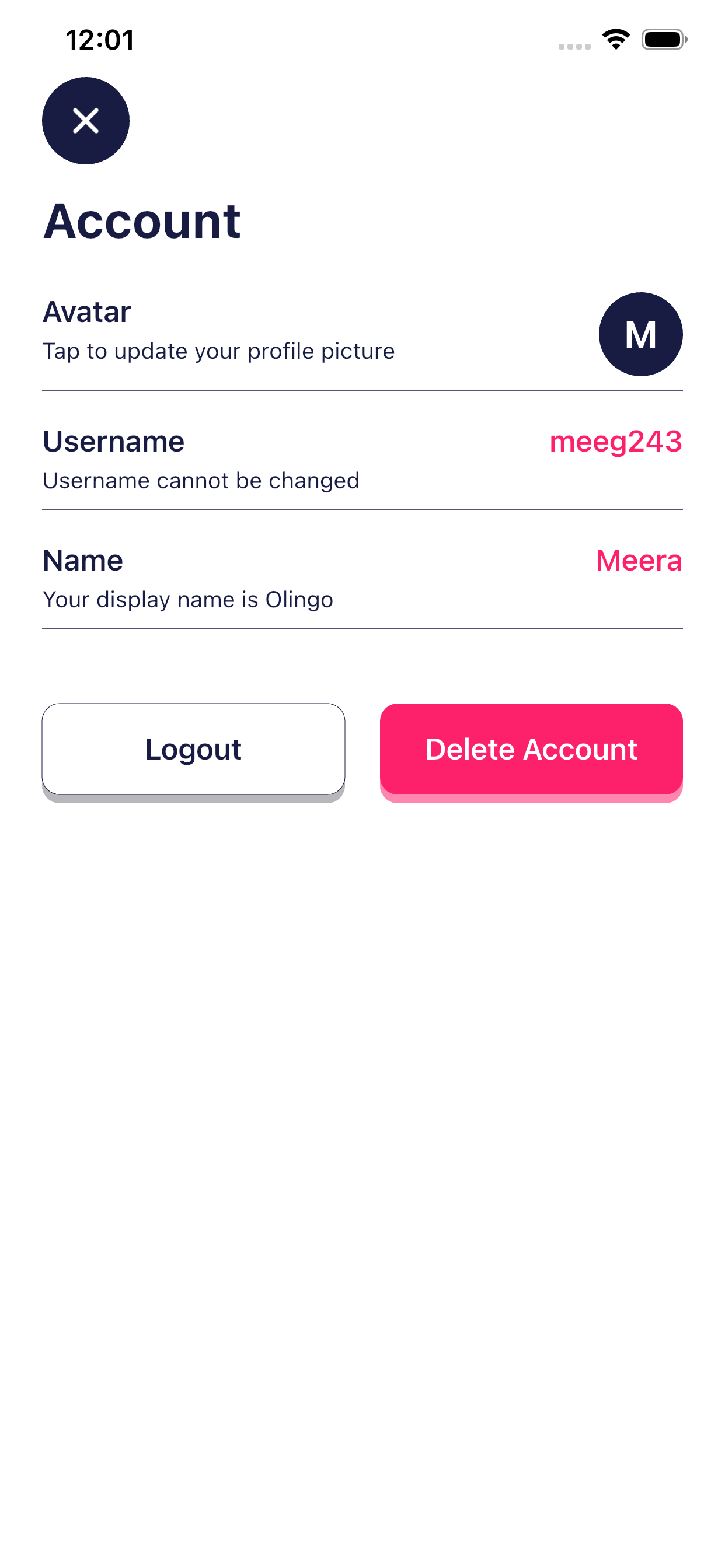 From the Profile screen, students can open Account Settings to manage basic account details.