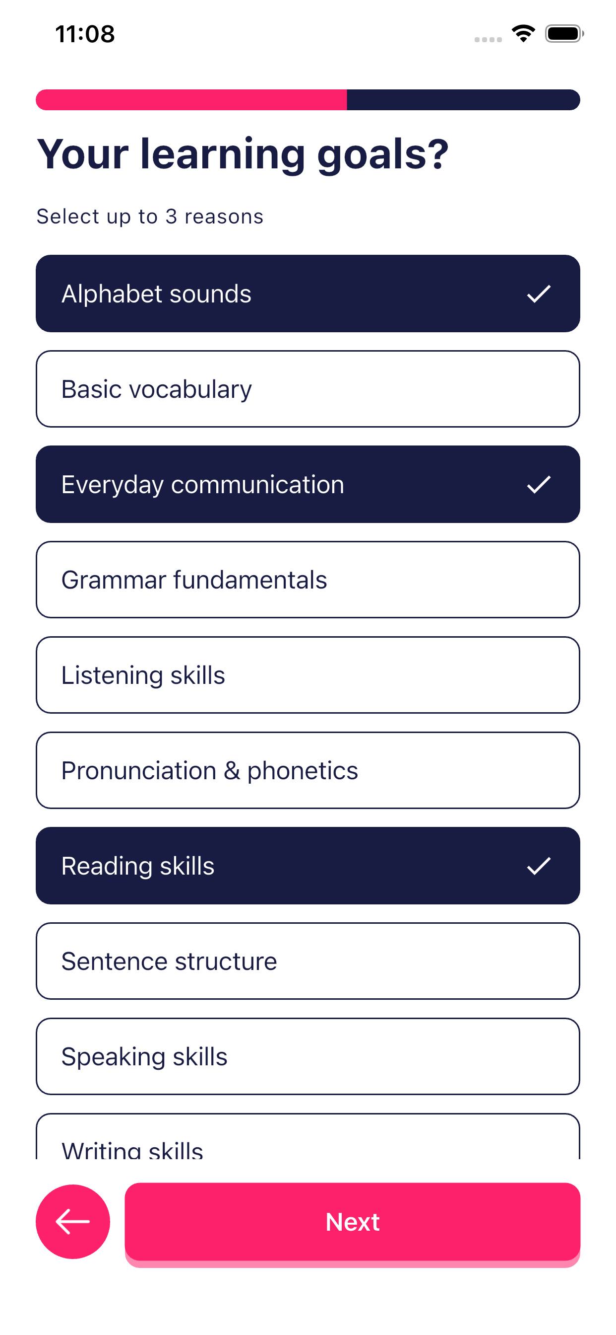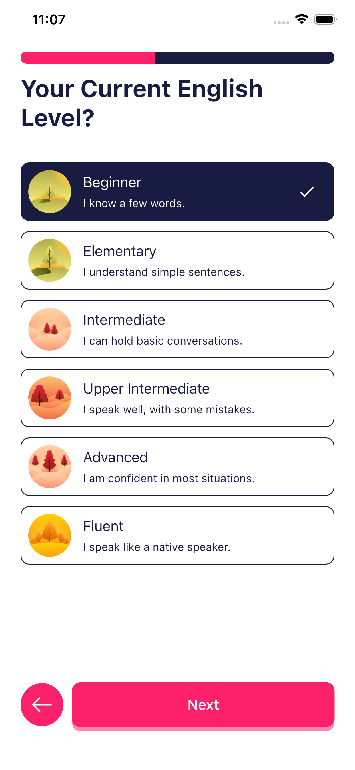 After logging in for the first time, the app will guide the student through a few simple steps.