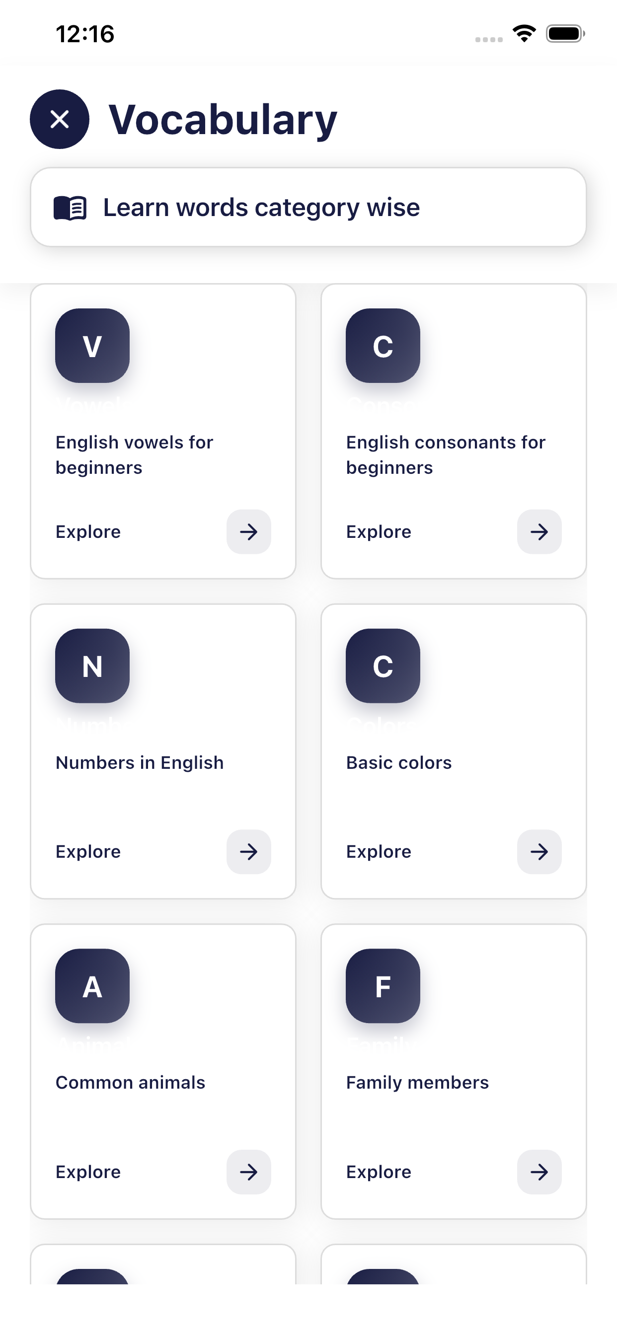 The Vocabulary section helps students learn basic and commonly used English words in an easy and structured way.