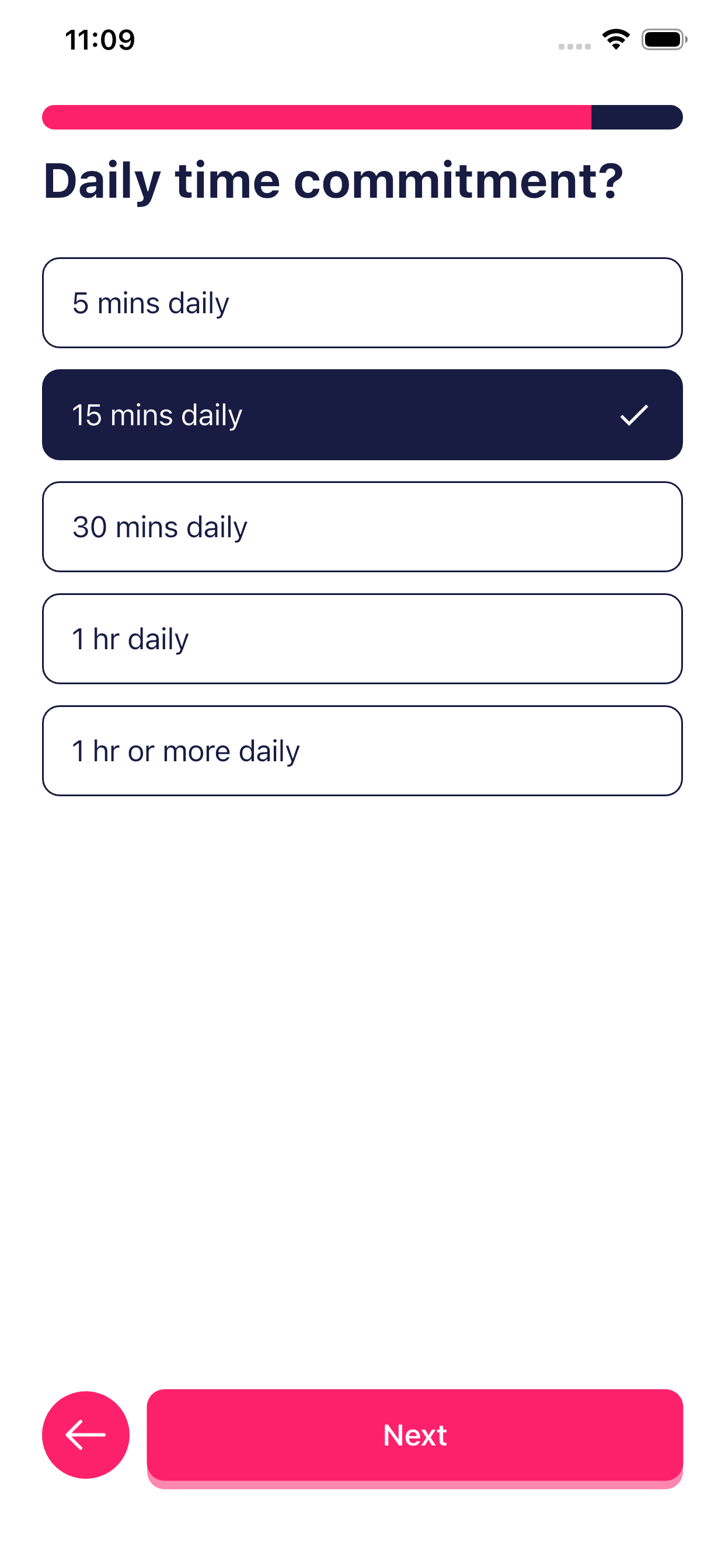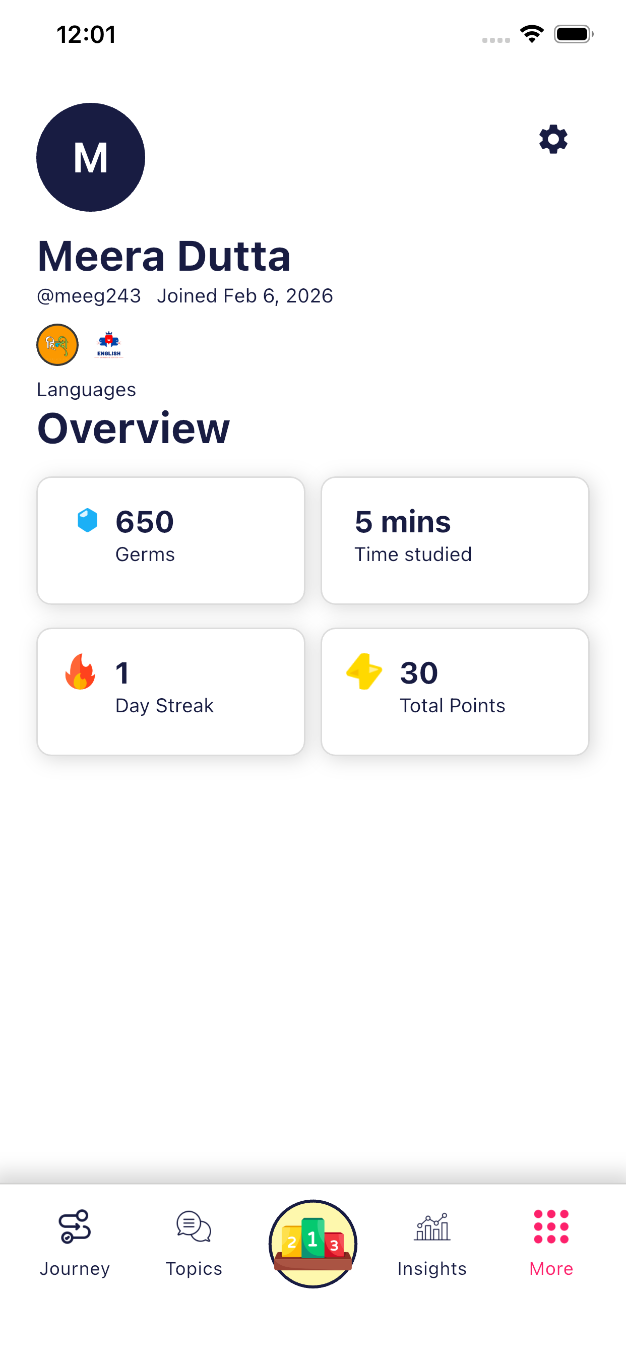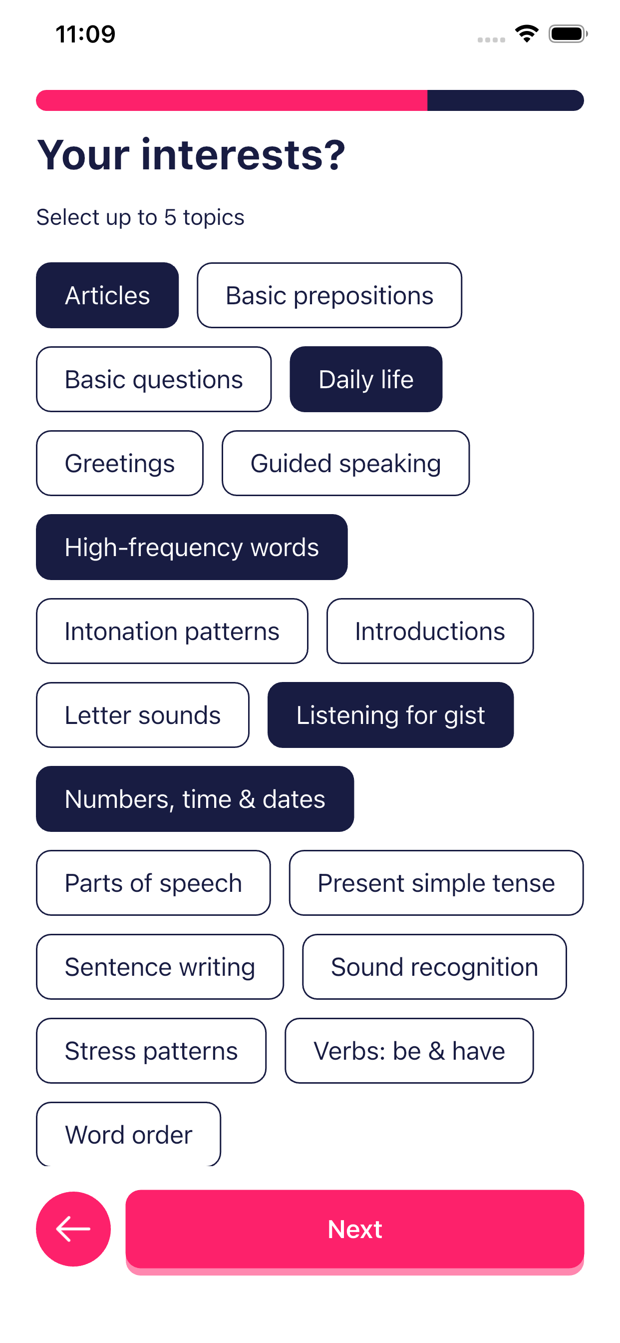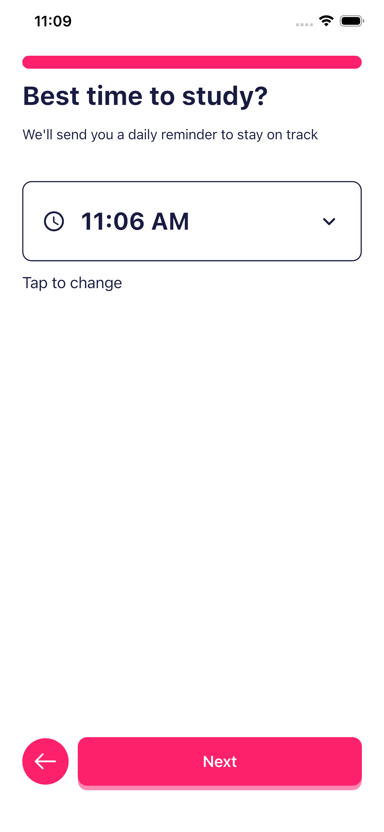 After logging in for the first time, the app will guide the student through a few simple steps.