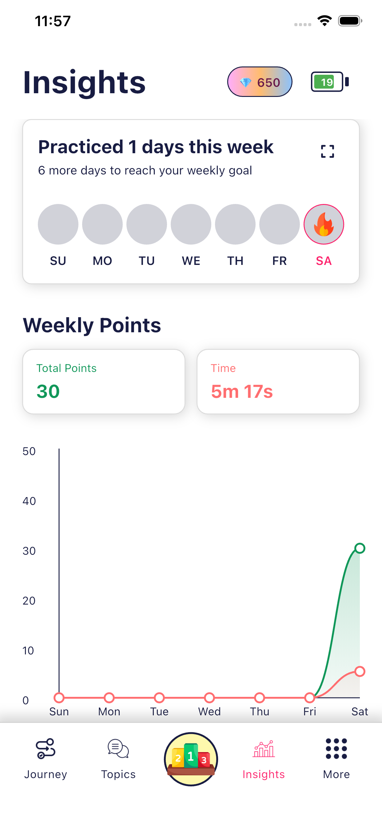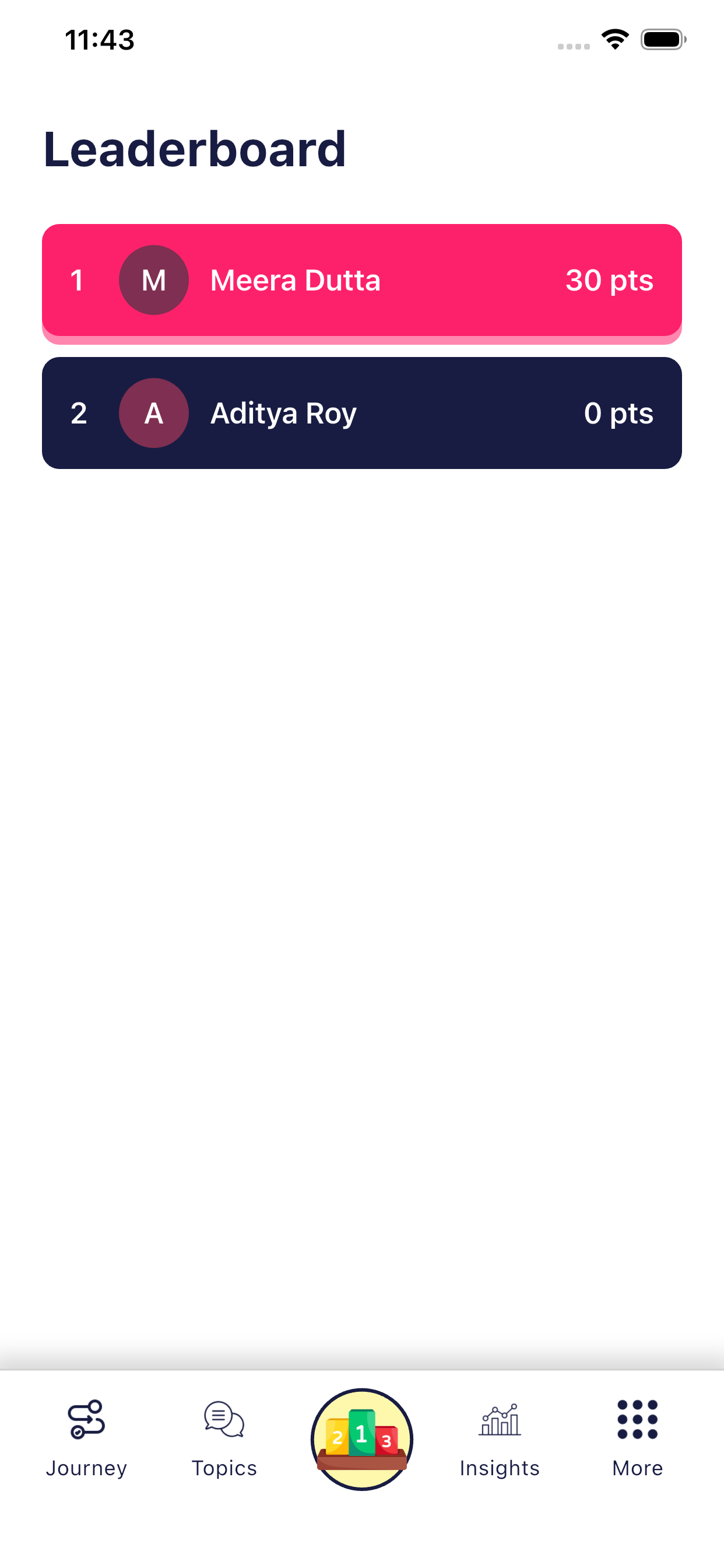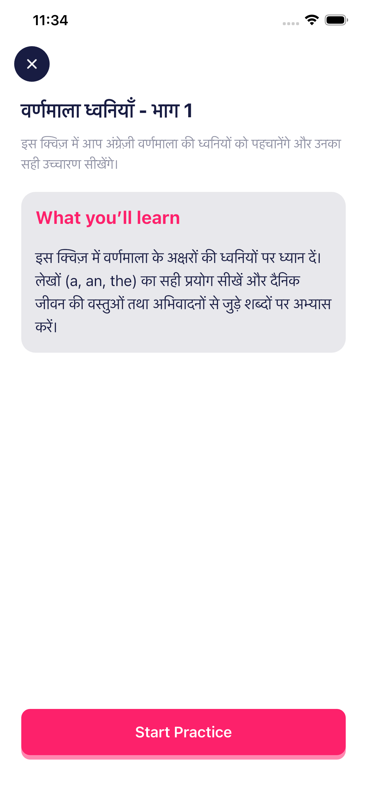 The Topic Detail screen provides complete information about the selected topic before starting.